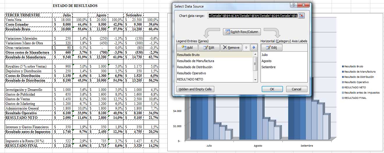 4.- Permite elegir filas o columnas como series, y etiquetas de series.