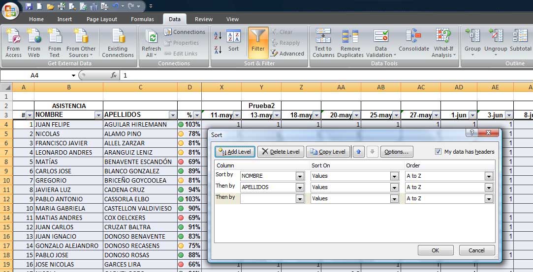 Datos (Ordenar, Filtros, Validación, Ordenar, Agrupar datos)