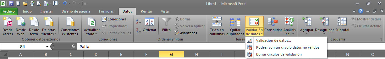 Seleccionar Validación de Datos, después de haber seleccionado la columna donde van los datos.